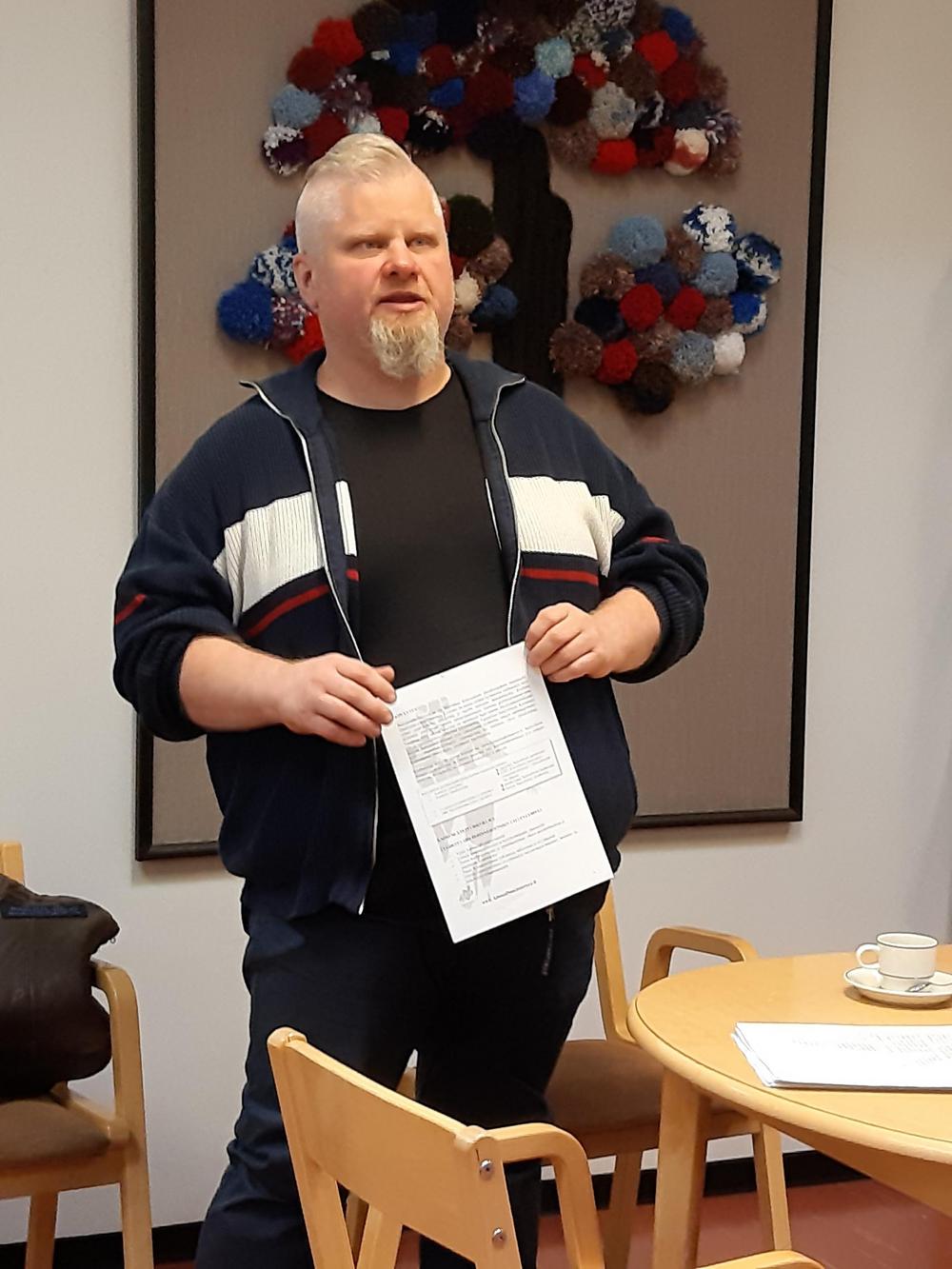 Kalevalainen jäsenkorjaaja Joni Hernberg kertoi kalevalaisesta jäsenkorjauksesta syyskuun jäsentapaamisessa.
